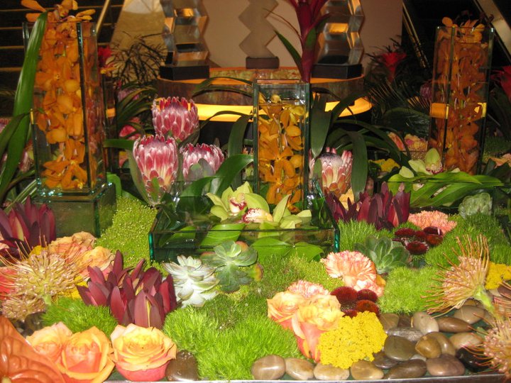 At the beginning of July I had the good fortune to attend the AIFD (American Institute of Floral Designers) National Symposium in San Francisco, a working vacation you might say. The theme this year was ‘Imagine – Dream, Create, Share.’ When I arrived at the hotel I immediately knew that I was in the right place. Flowers were everywhere. The colour scheme for the lobby flowers was red, orange and yellow.